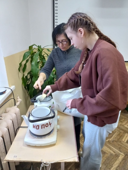 Вчителька Руслана Володимирівна Мартинюк поділилася секретами виготовлення окопних свічок: показала найменші, але дуже важливі деталі – з чого розпочати роботу, як обрати банку, як правильно скрутити картон, щоб свічка в результаті давала більше тепла, якою має бути висота картонної смужки, щільність заповнення та інше.