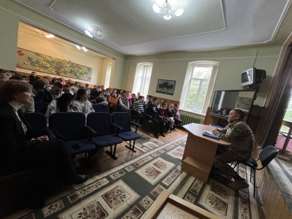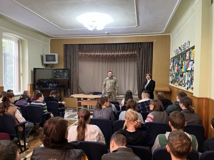 Розпочала бесіду вчитель історії Світлана Гураль, яка розповіла учням про козацькі часи, їхню відвагу та непохитну любов до рідної землі. А військовослужбовець - Олександр Чорний поділився розповіддю про сучасних захисників України, їхні будні та справжній подвиг на фронті.