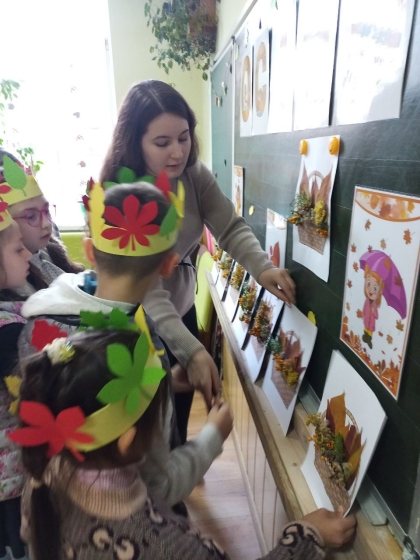 Діти пригадували ознаки осені, відгадували загадки, розповідали вірші та грали в пізнавальні ігри. Родзинкою заходу стала творча робота — виготовлення об’ємної аплікації з природного матеріалу.